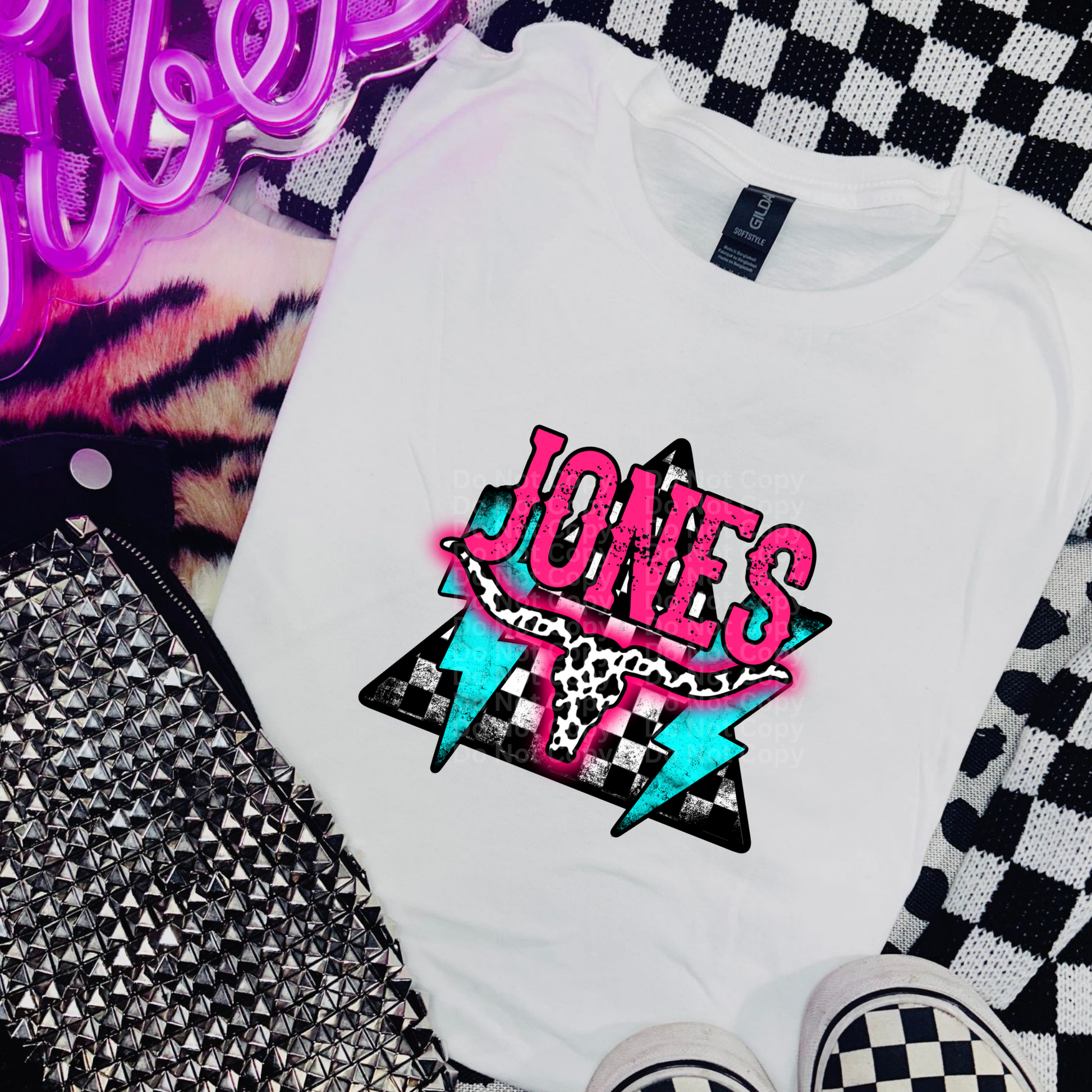 J0nes Pink, Blue & Checkered Triangle DTF Transfer