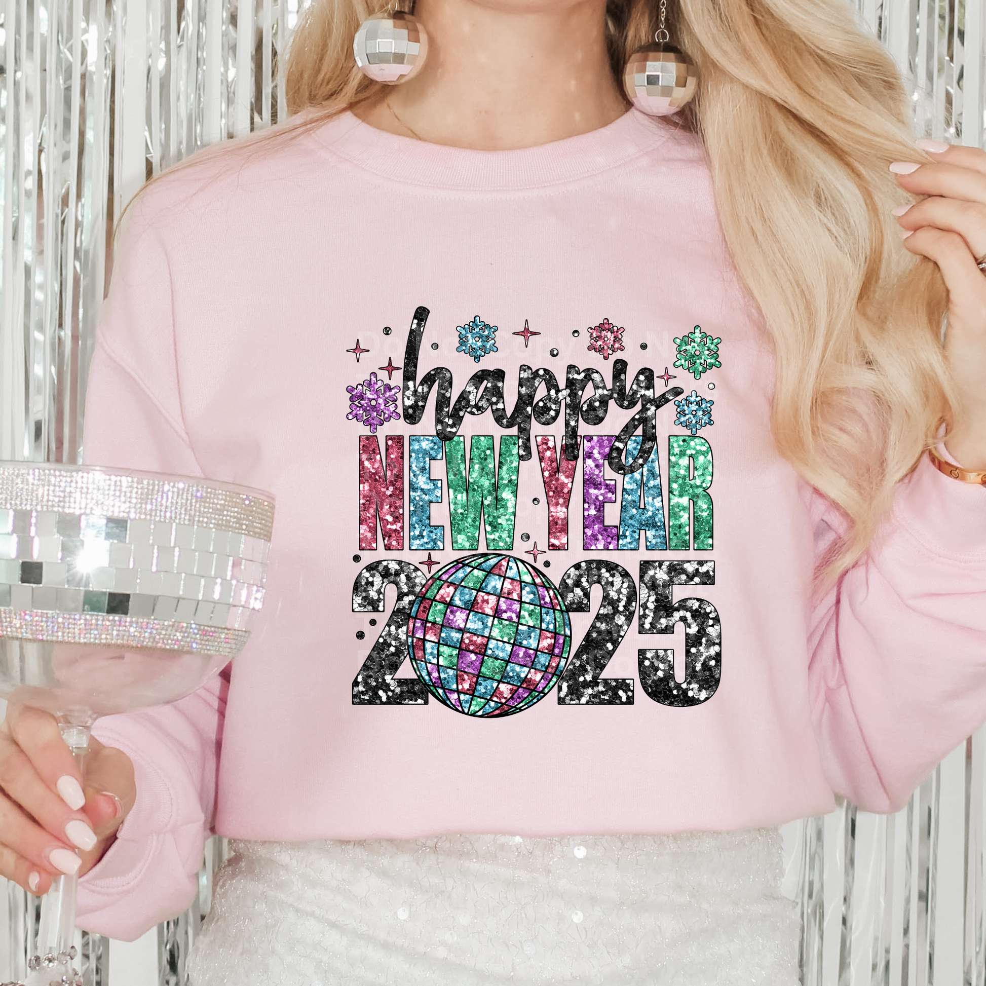 Happy New Year 2025 Disco/Snowflakes Faux Sequins DTF Transfer