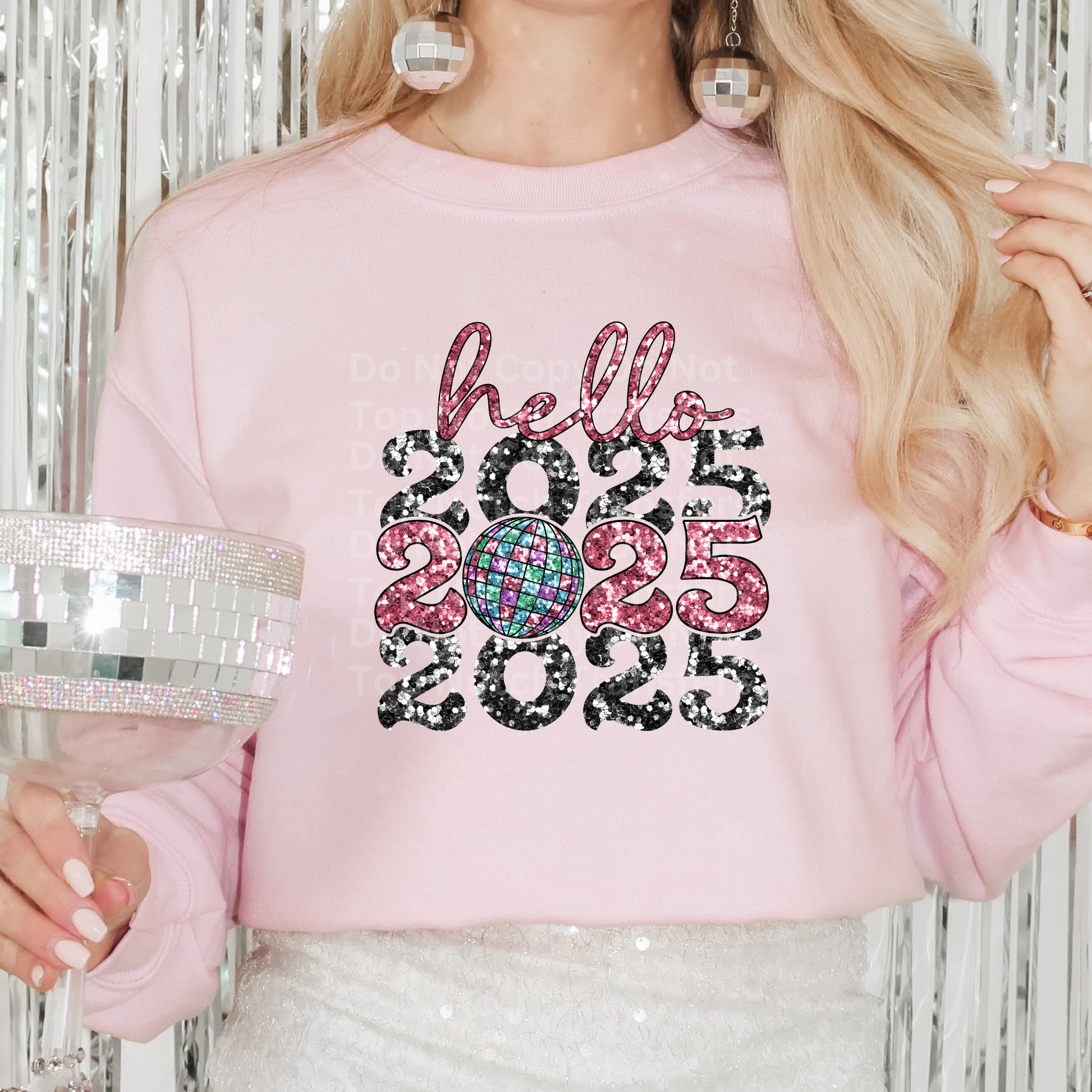 Hello 2025 Disco Pnk/Blk Stacked DTF Transfer
