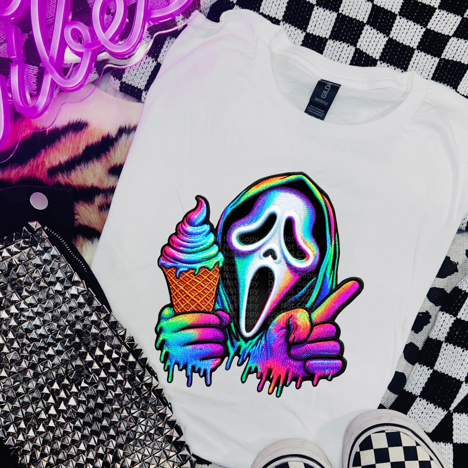 Holographic Mask with Ice Cream DTF Transfer