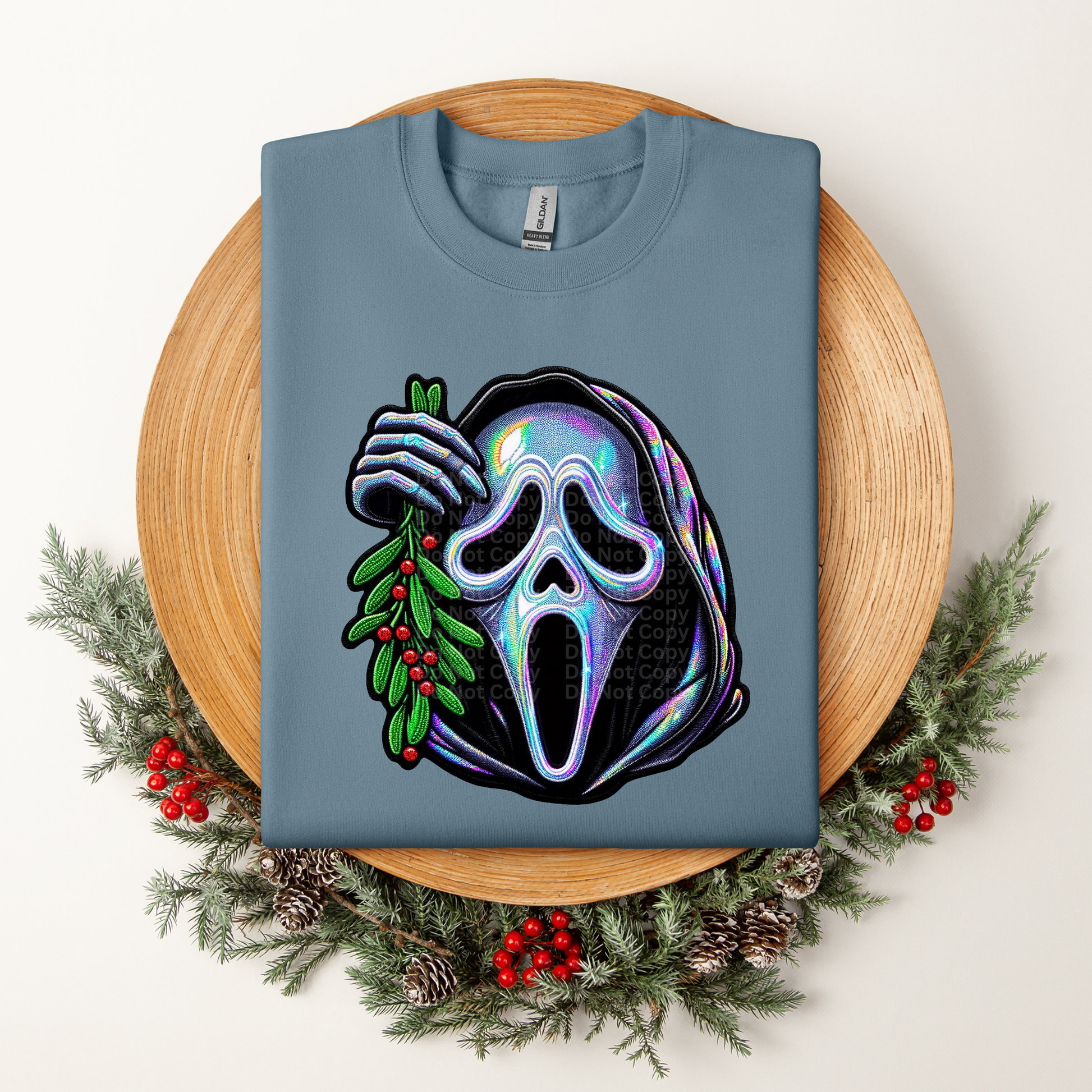 Holographic Mask with Mistletoe DTF Transfer