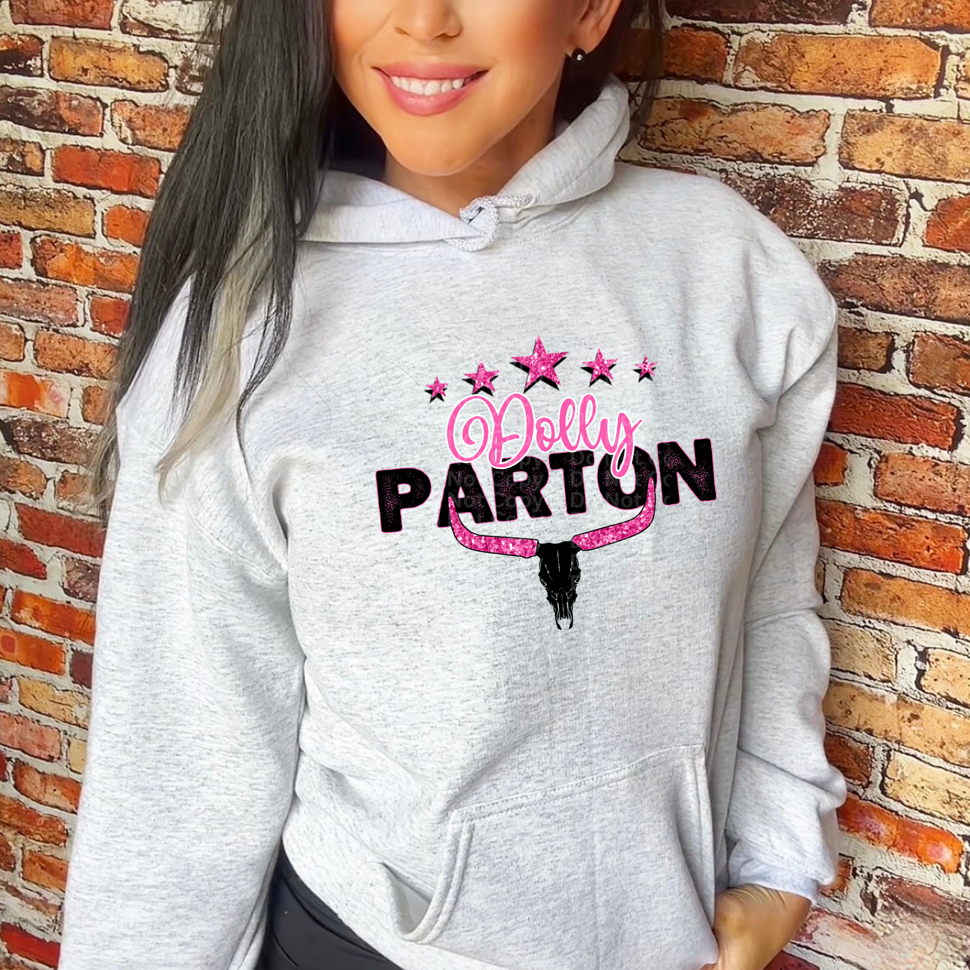 D0lly Pink Glitter/Black Skull DTF Transfer