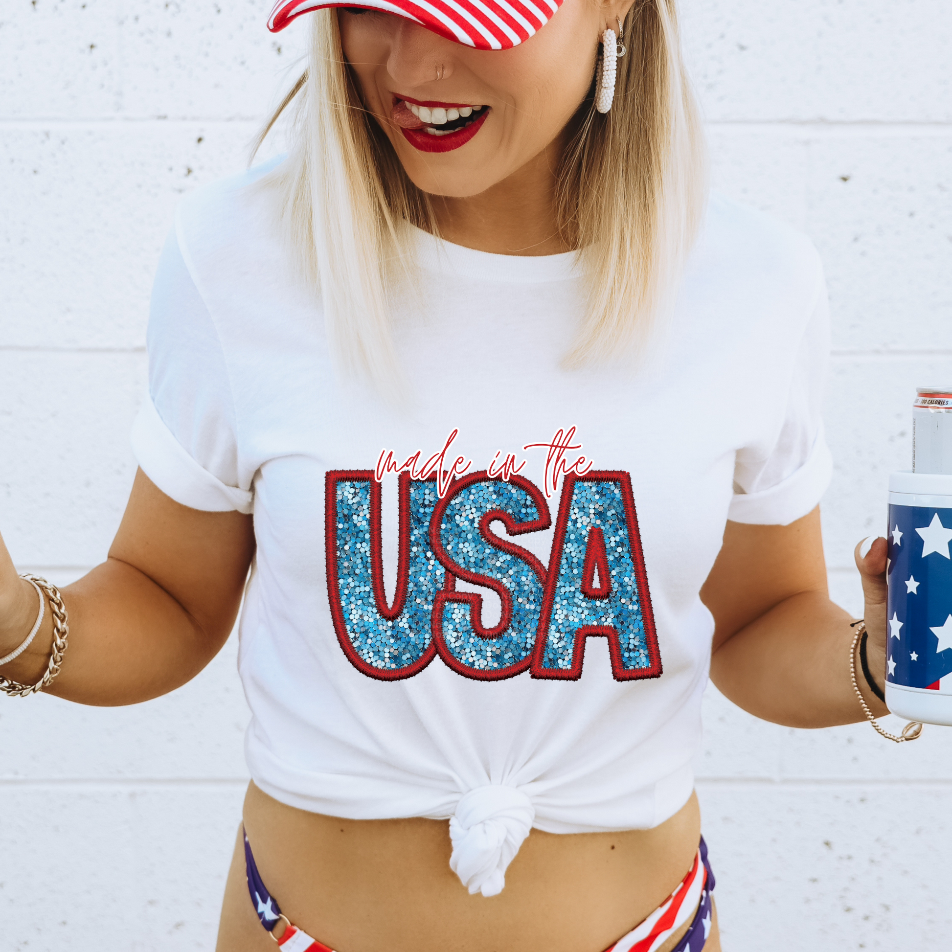 Made In the USA Light Blue Faux Sequins DTF Transfer
