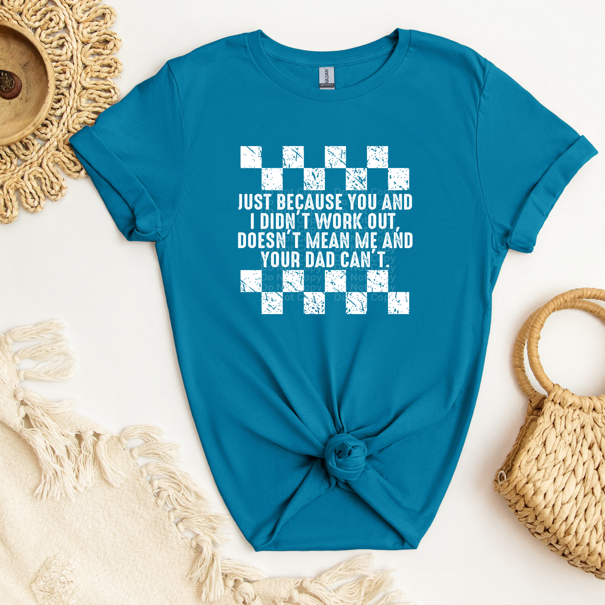 Just Because you and I Didn't Work out Doesn't Mean Me and Your Dad I Can't (White) DTF Transfer