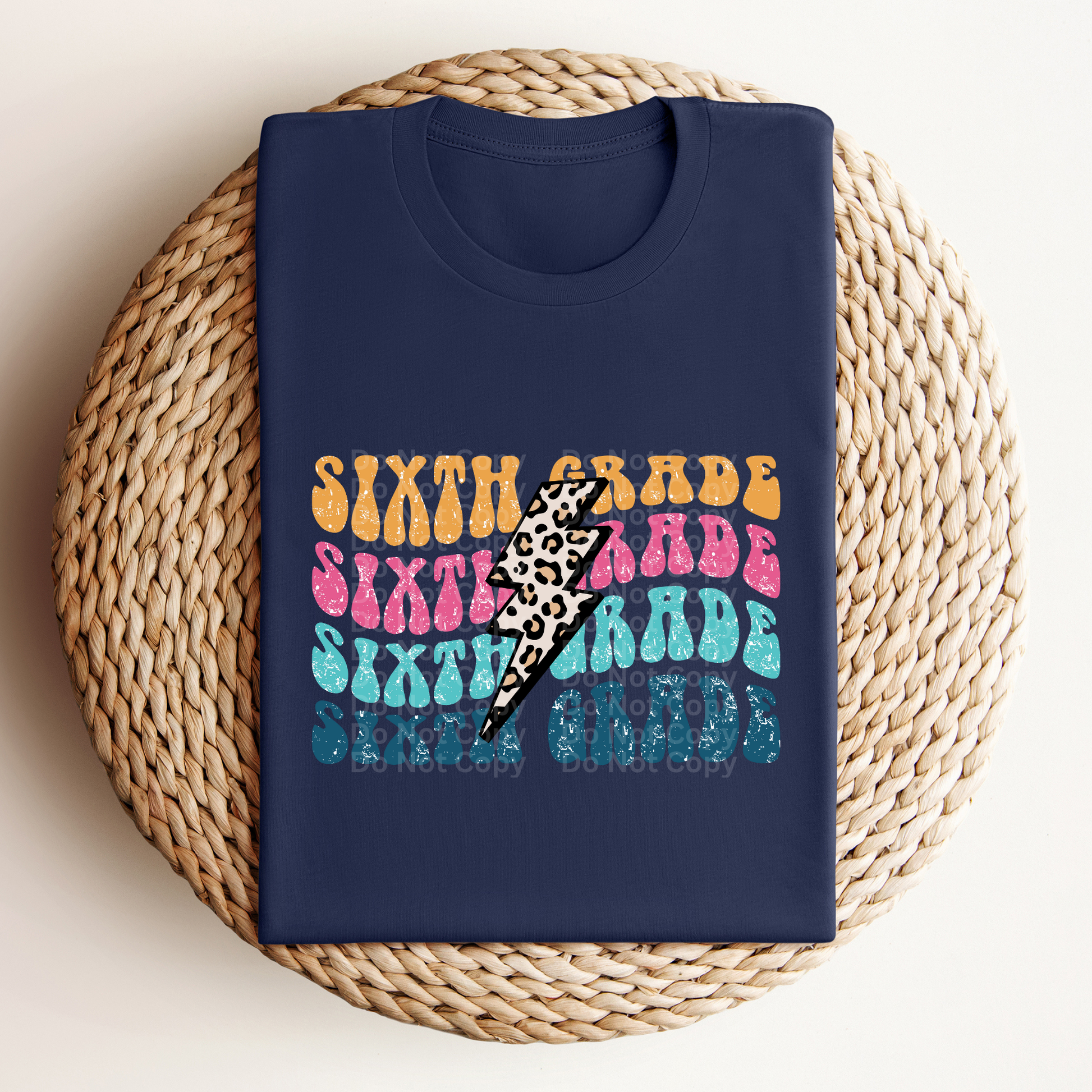 Sixth Grade Colorful/Stacked with Leopard Bolt DTF Transfer