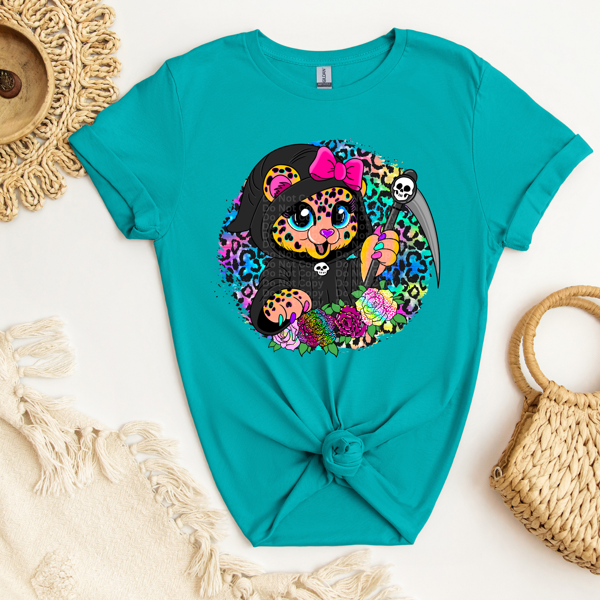 LF Leopard Reaper Orange with Colorful Round background DTF Transfer