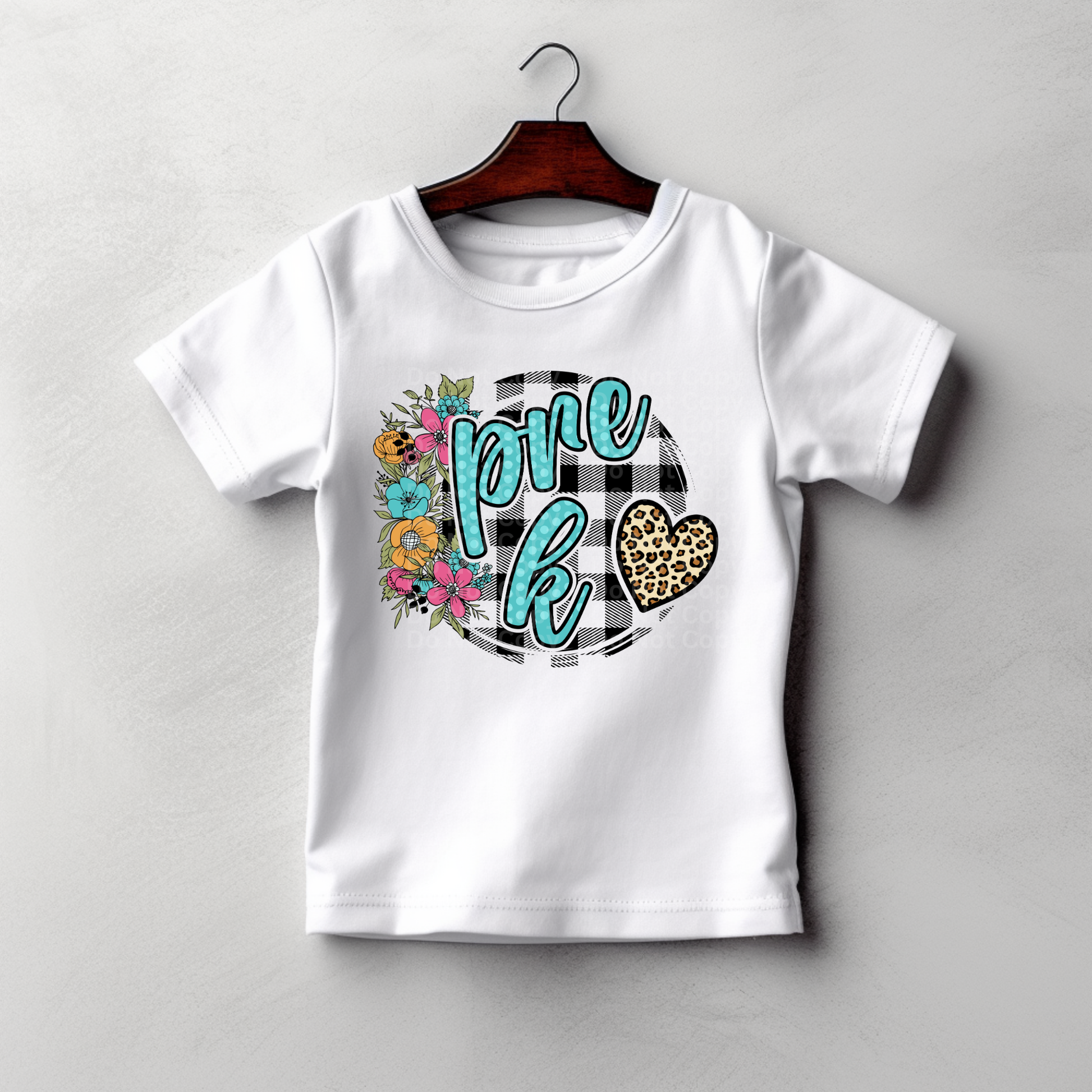 Pre k Blue Font with Black & White Plaid Circle DTF Transfer