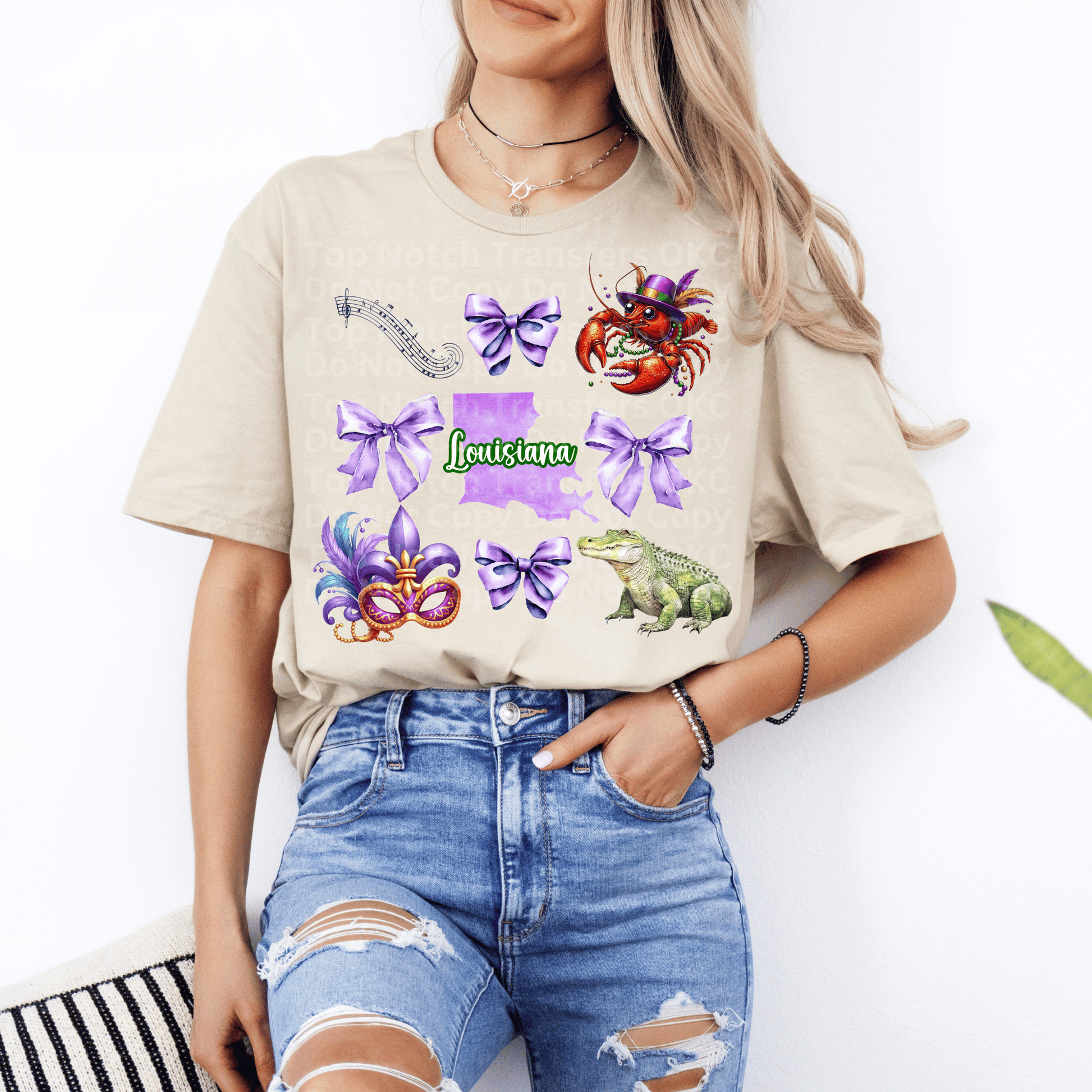 Our DTF transfers are printed with a commercial DTF printer and cured to perfection. Direct to Film transfers allow you to be able to easily apply multicolor designs to many different types of fabric and materials. Transfers are very easy to use and come with instructions, the film will peel off smoothly after allowing to cool after the first press. We also print Custom designs, if you have your own png file you would like to have printed just upload it to our Custom design option!