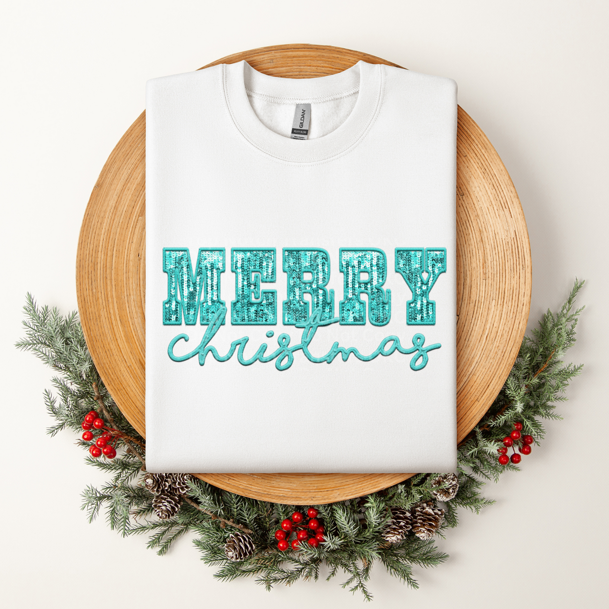 Merry Christmas Aqua Faux Sequins DTF Transfer