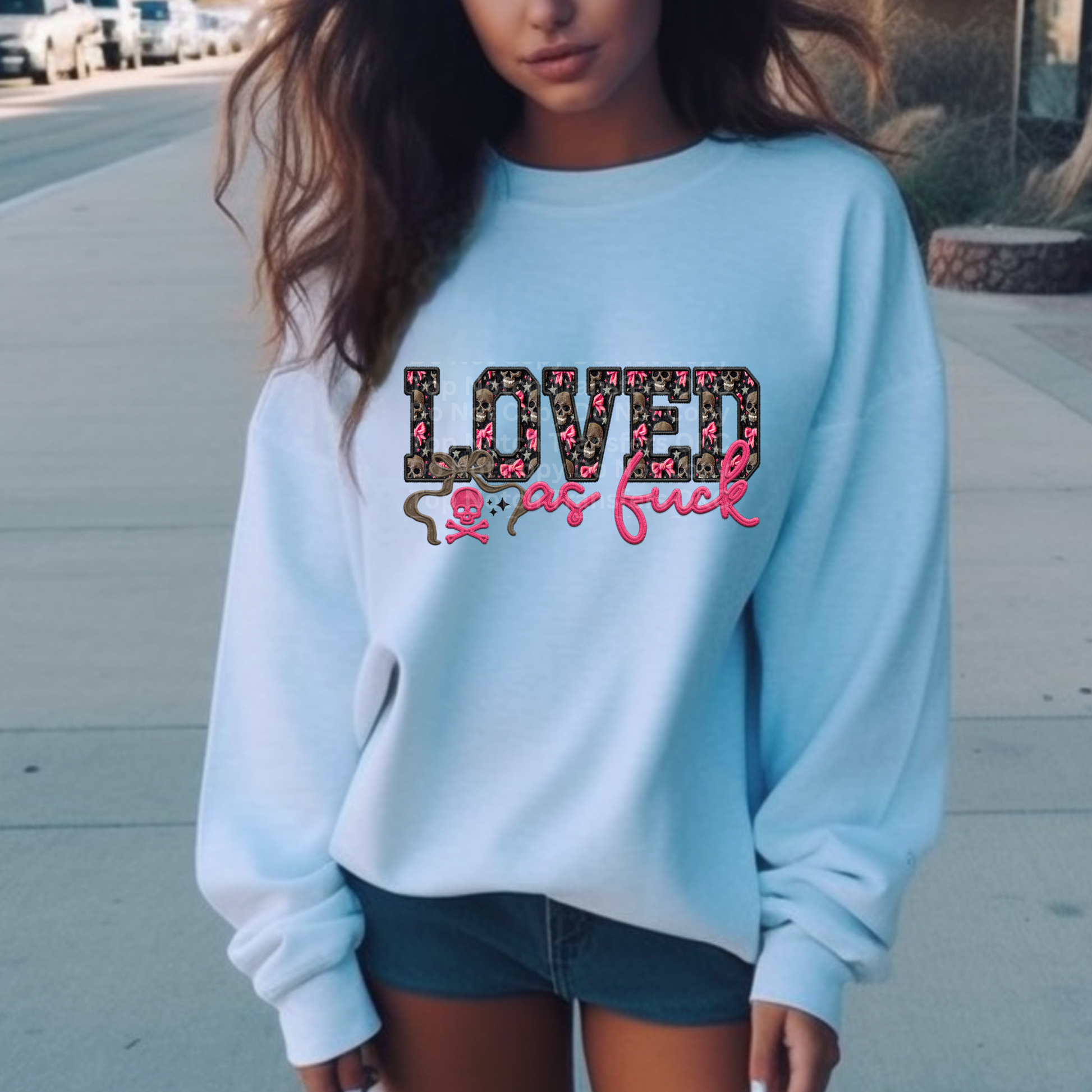 Our DTF transfers are printed with a commercial DTF printer and cured to perfection. Direct to Film transfers allow you to be able to easily apply multicolor designs to many different types of fabric and materials. Transfers are very easy to use and come with instructions, the film will peel off smoothly after allowing to cool after the first press. We also print Custom designs, if you have your own png file you would like to have printed just upload it to our Custom design option!