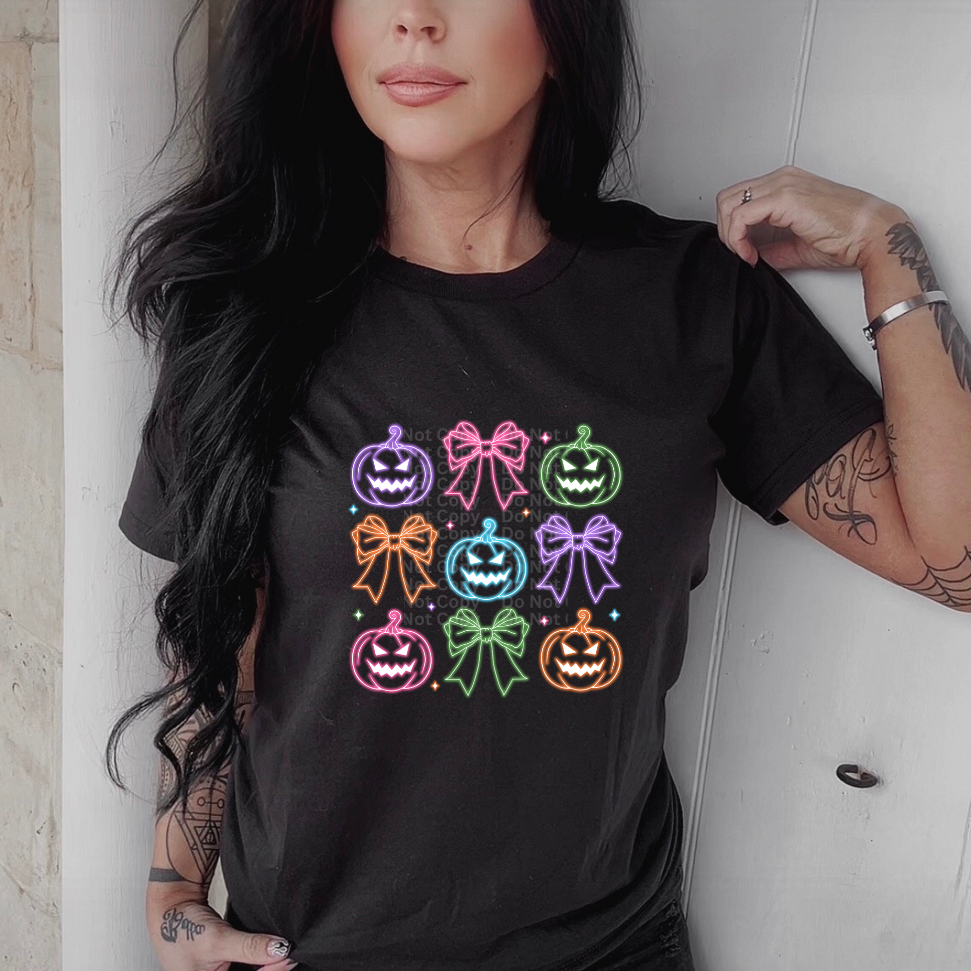 Neon Jack o lantern & Bow Coquette DTF Transfer