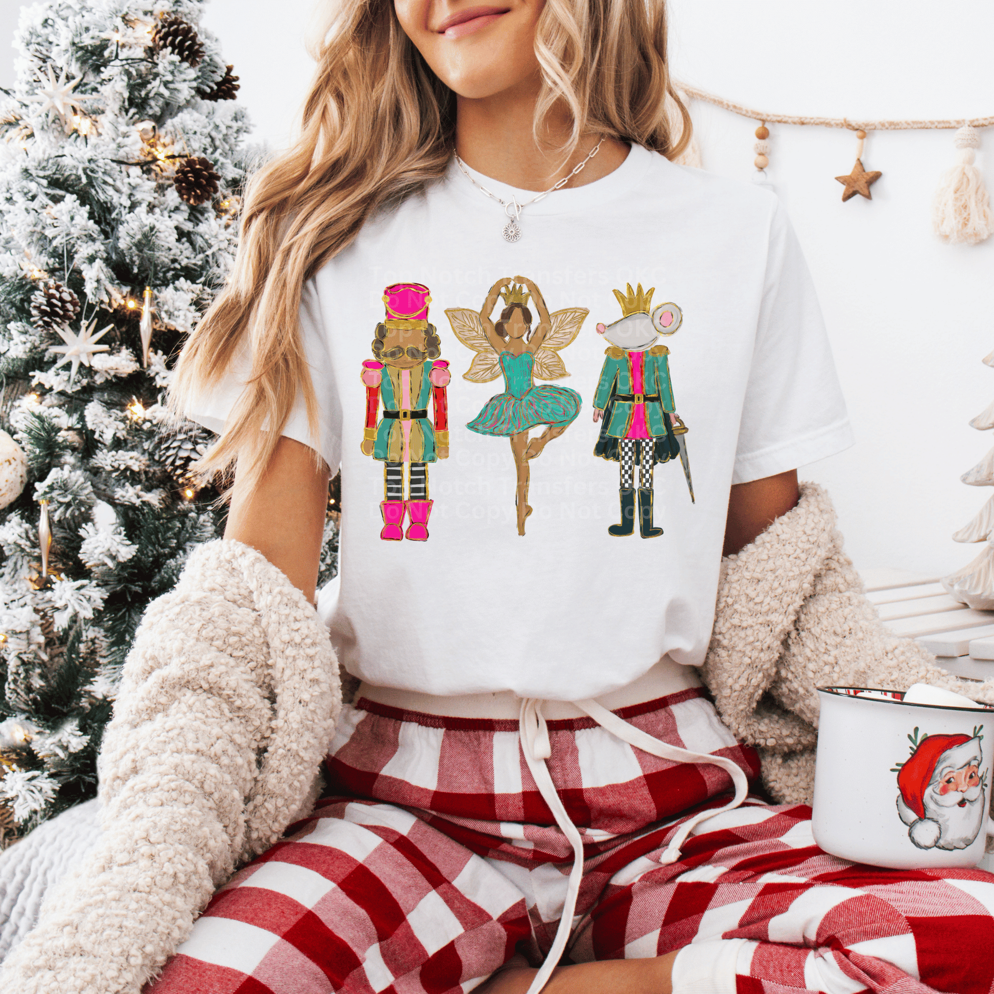 Nutcracker with Brown Hair, Ballerina & Mouse (Dark) DTF Transfer