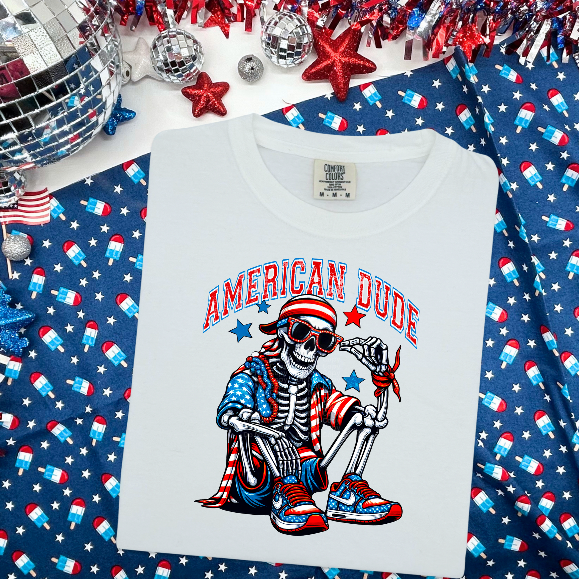 American Dude Skeleton in checkmark sneakers DTF Transfer