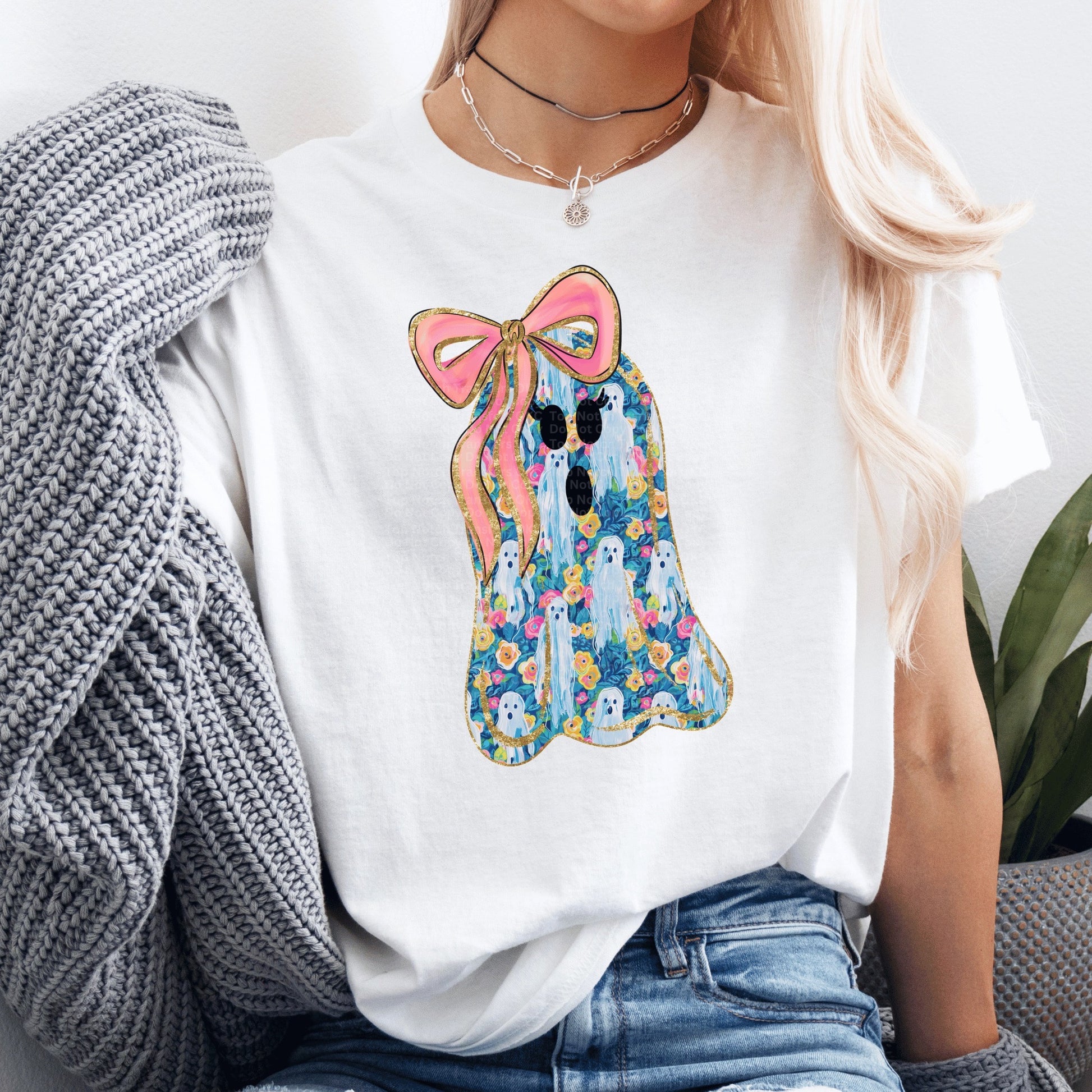 RTS Watercolor Ghost w/ Bow ADULT DTF Transfer