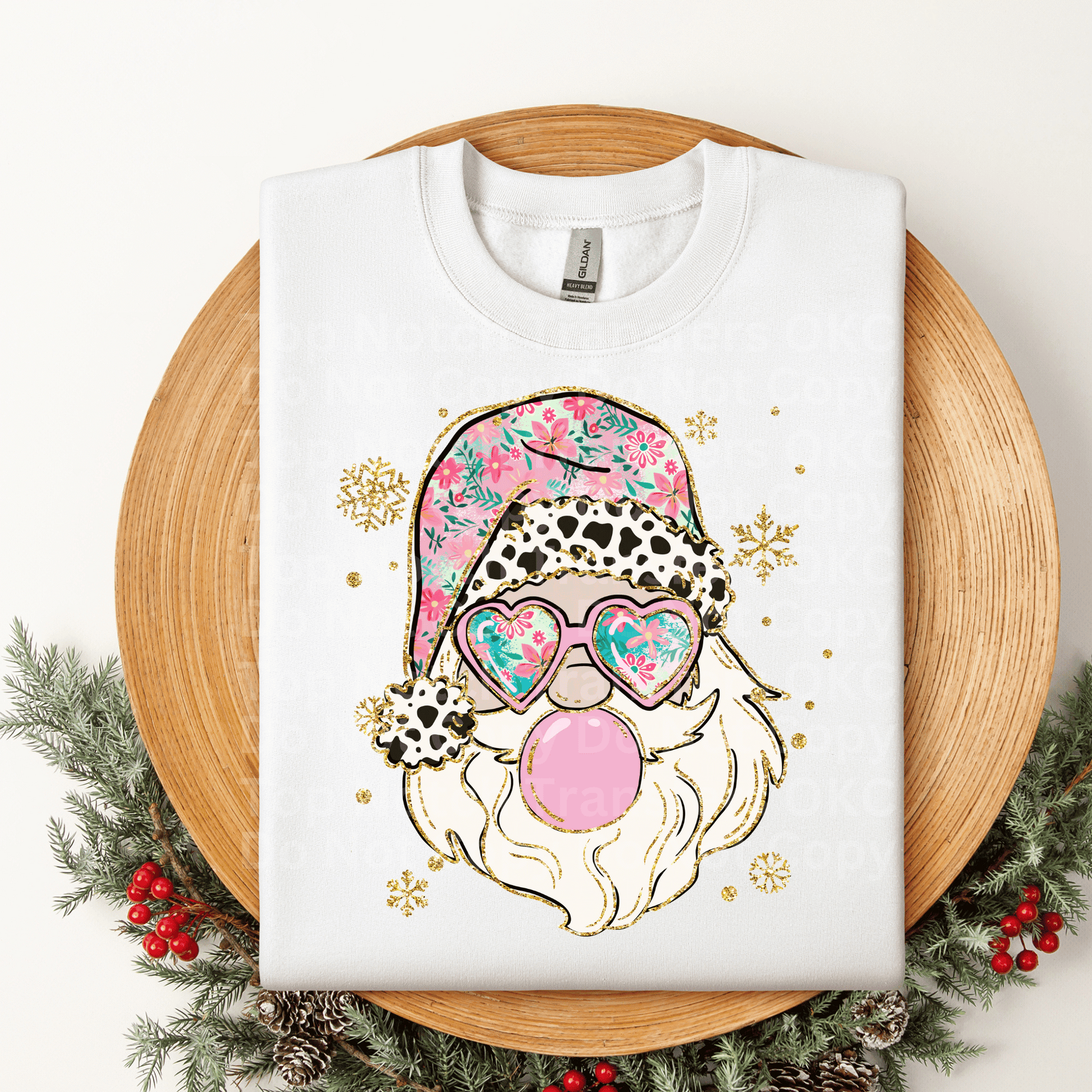 Santa Floral Heart Glasses Blowing Bubble DTF Transfer