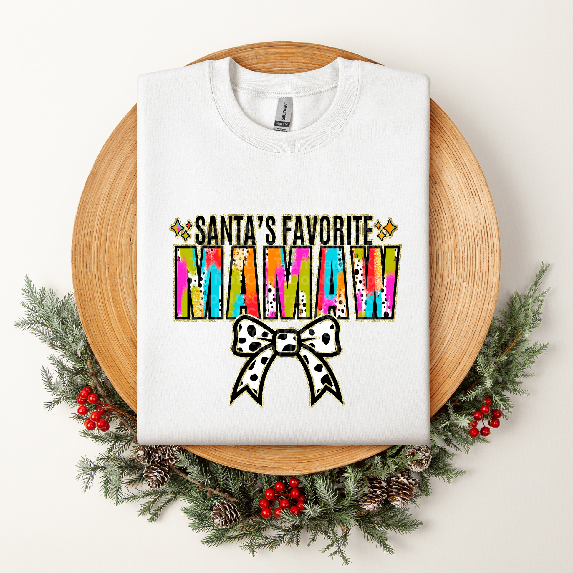 Santa's Favorite Mamaw Multicolored w/White Bow DTF Transfer