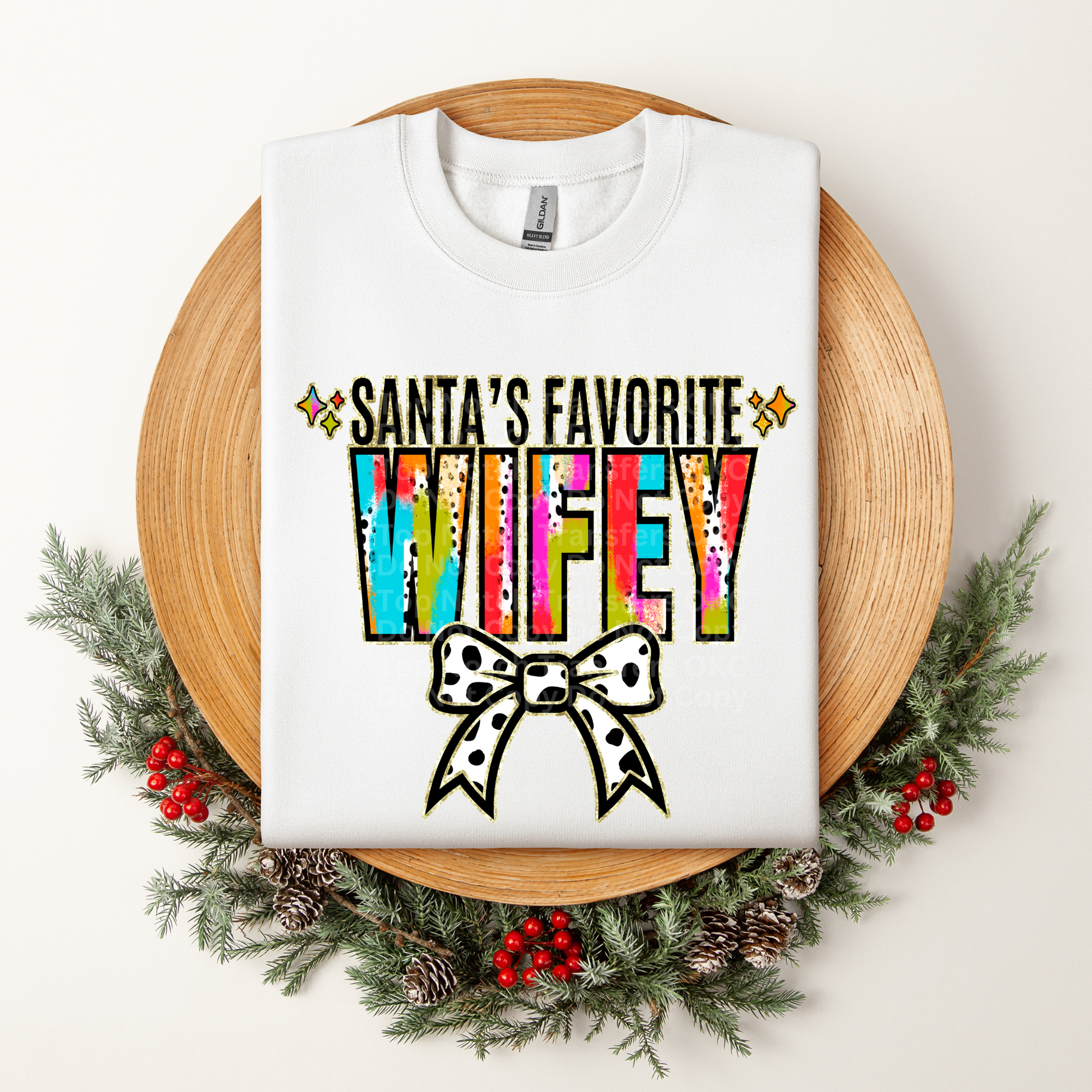 Santa's Favorite Wifey Multicolored w/White Bow DTF Transfer