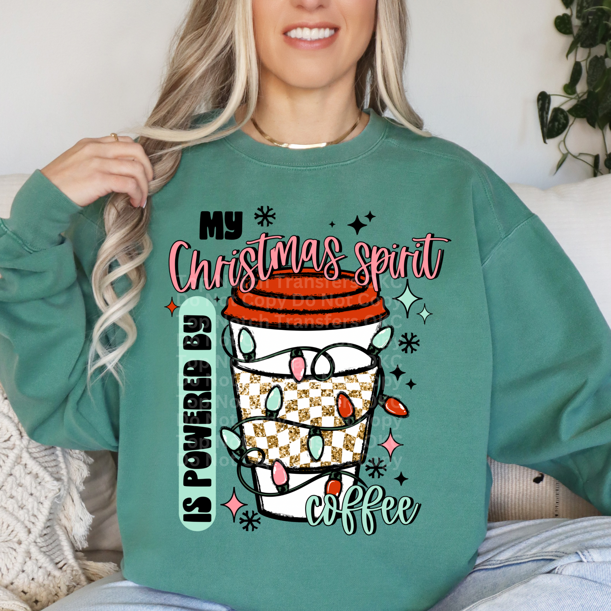 My Christmas Spirit Is Powered By Coffee Semi- Exclusive DTF Transfer