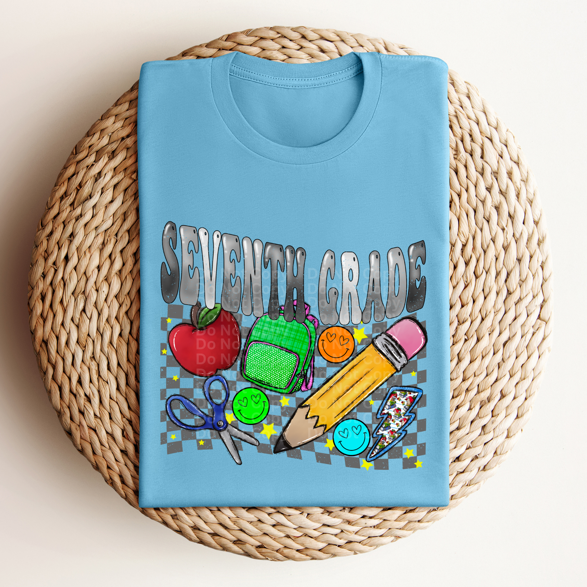 Seventh Grade Grey Font/Grey Checkered DTF Transfer