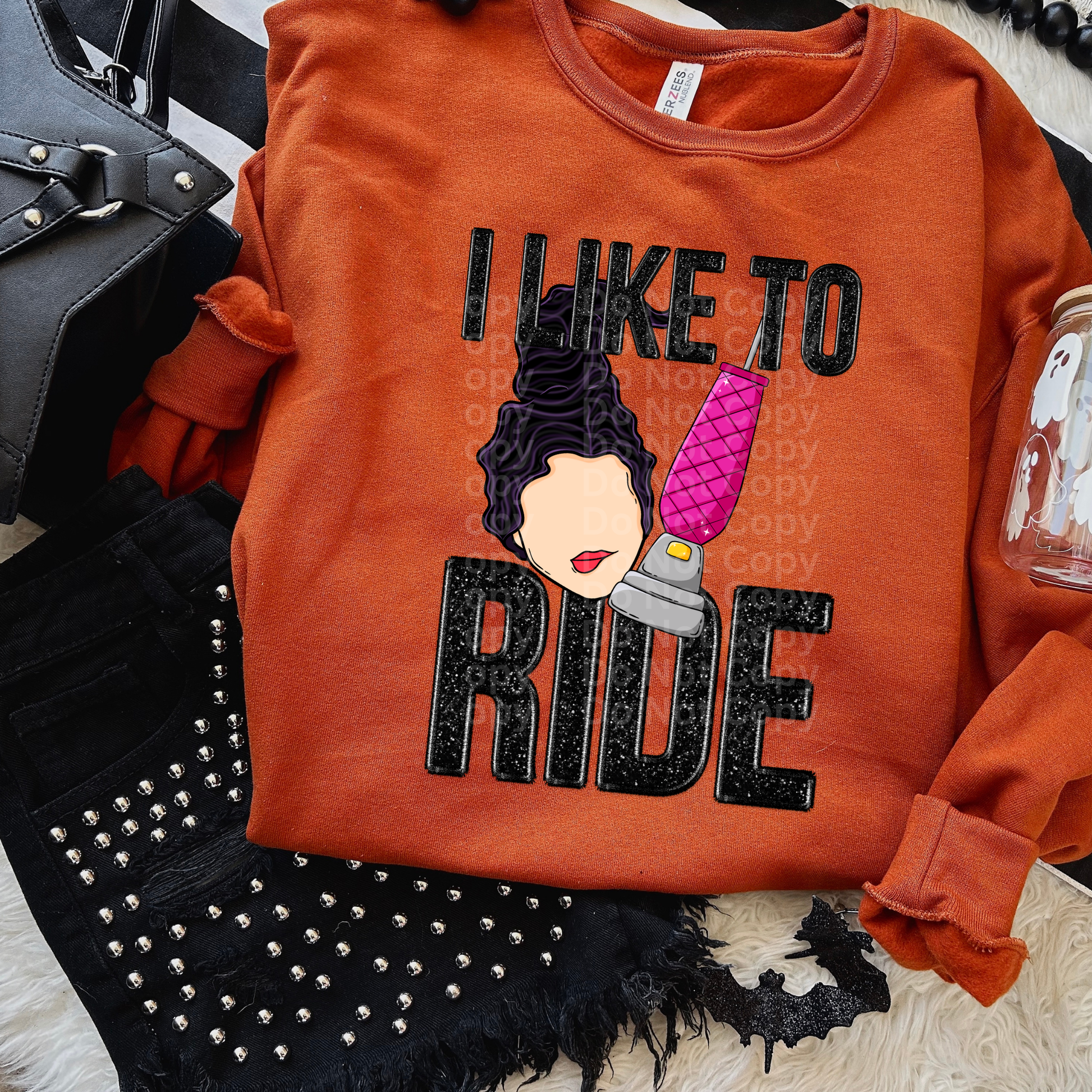 I Like to Ride Black Hair Vacuum DTF Transfer