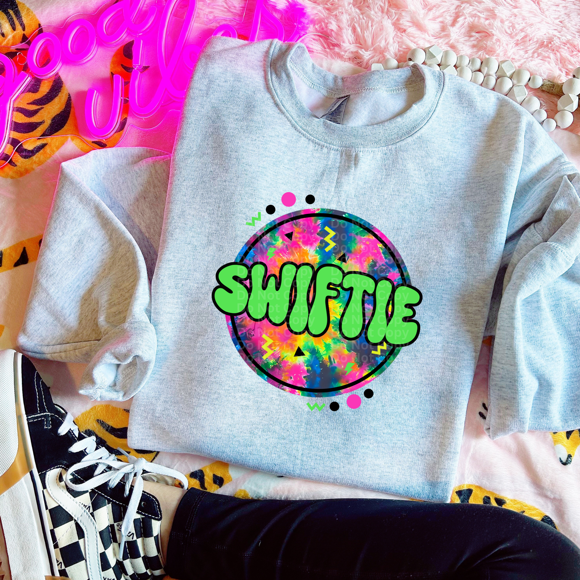 Sw!ftie Green Letters over Tye-Dye Circle DTF Transfer