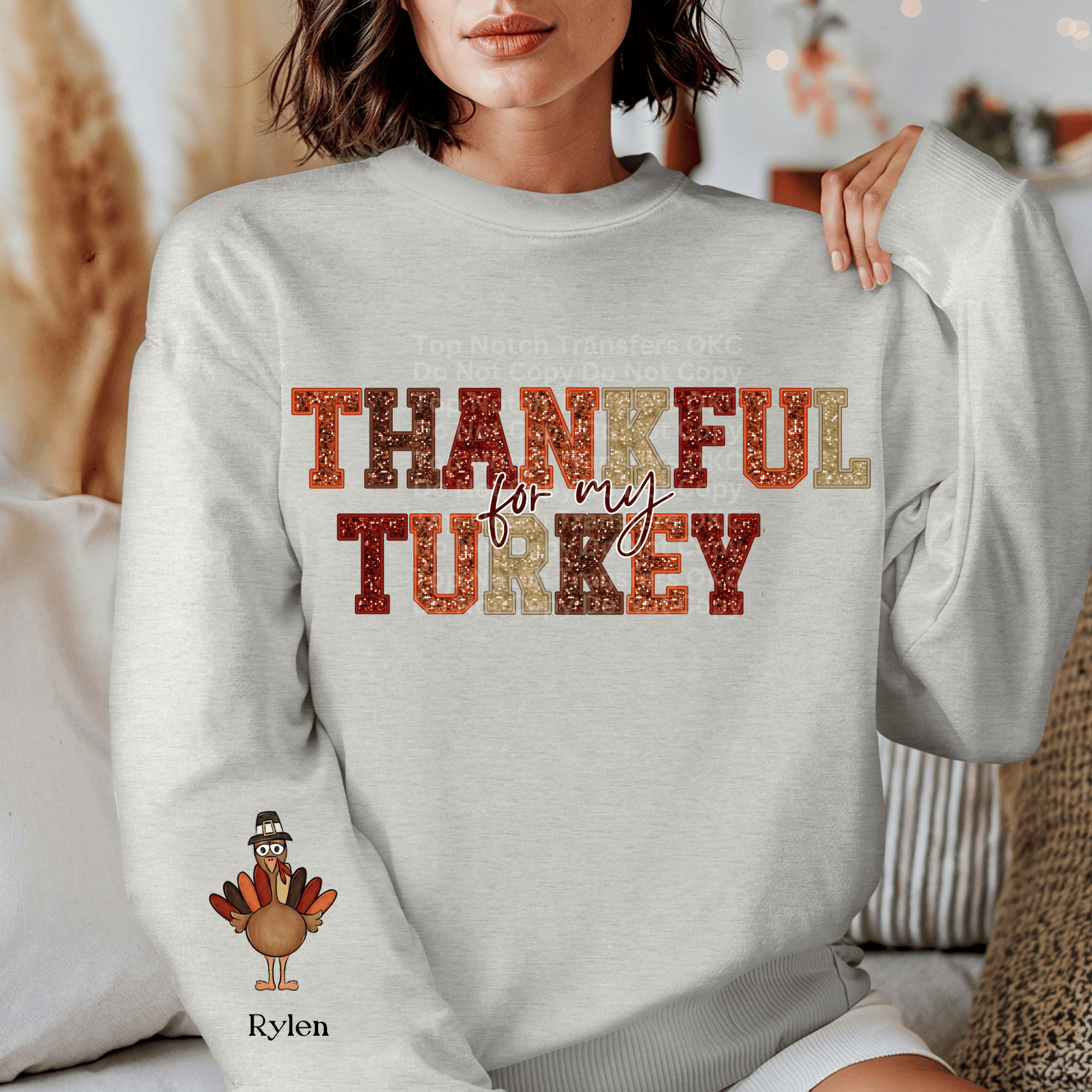 Thankful For My Turkey *Optional Customizable long sleeve design* DTF Transfer