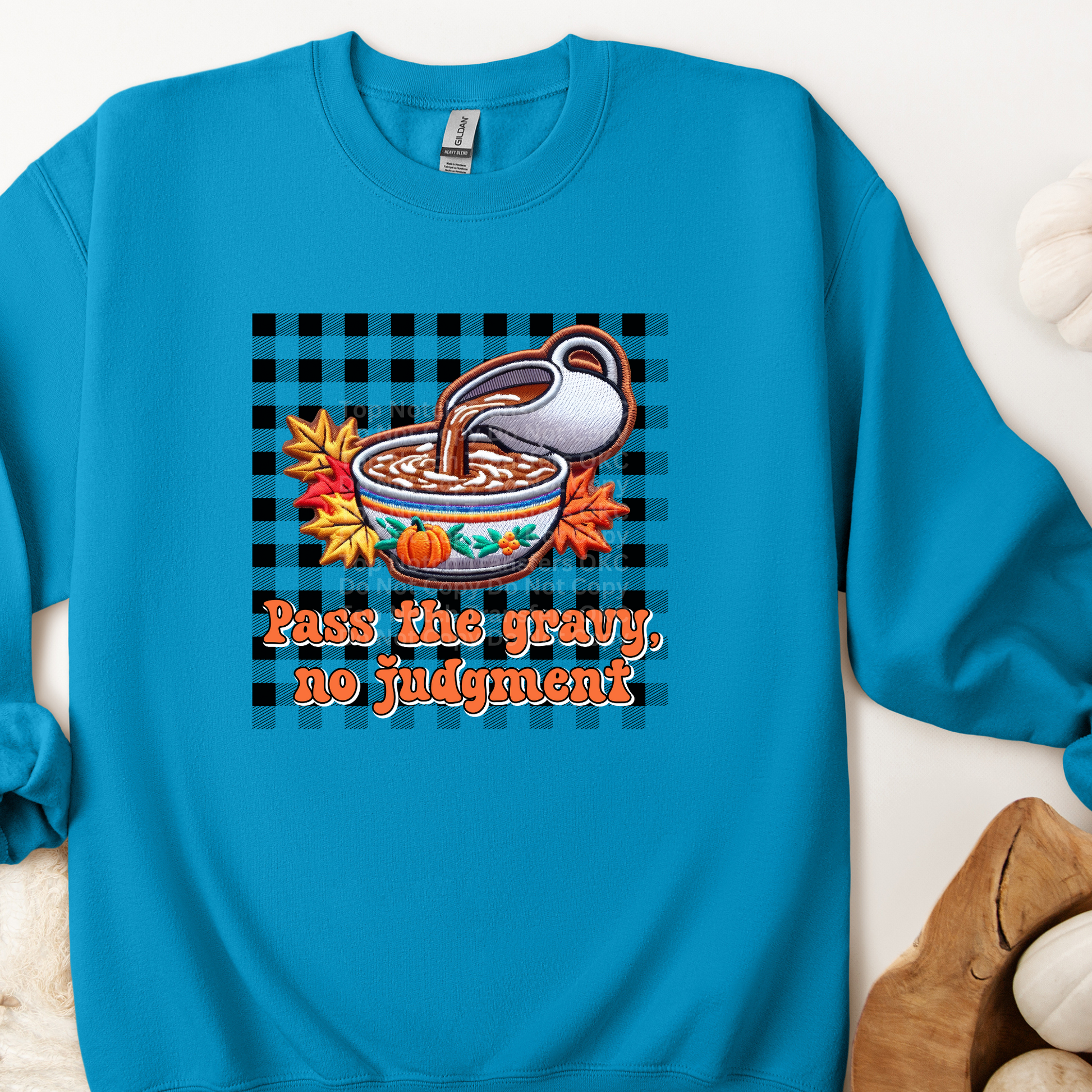 Pass The Gravy, No Judgement - Faux Embroidery DTF Transfer