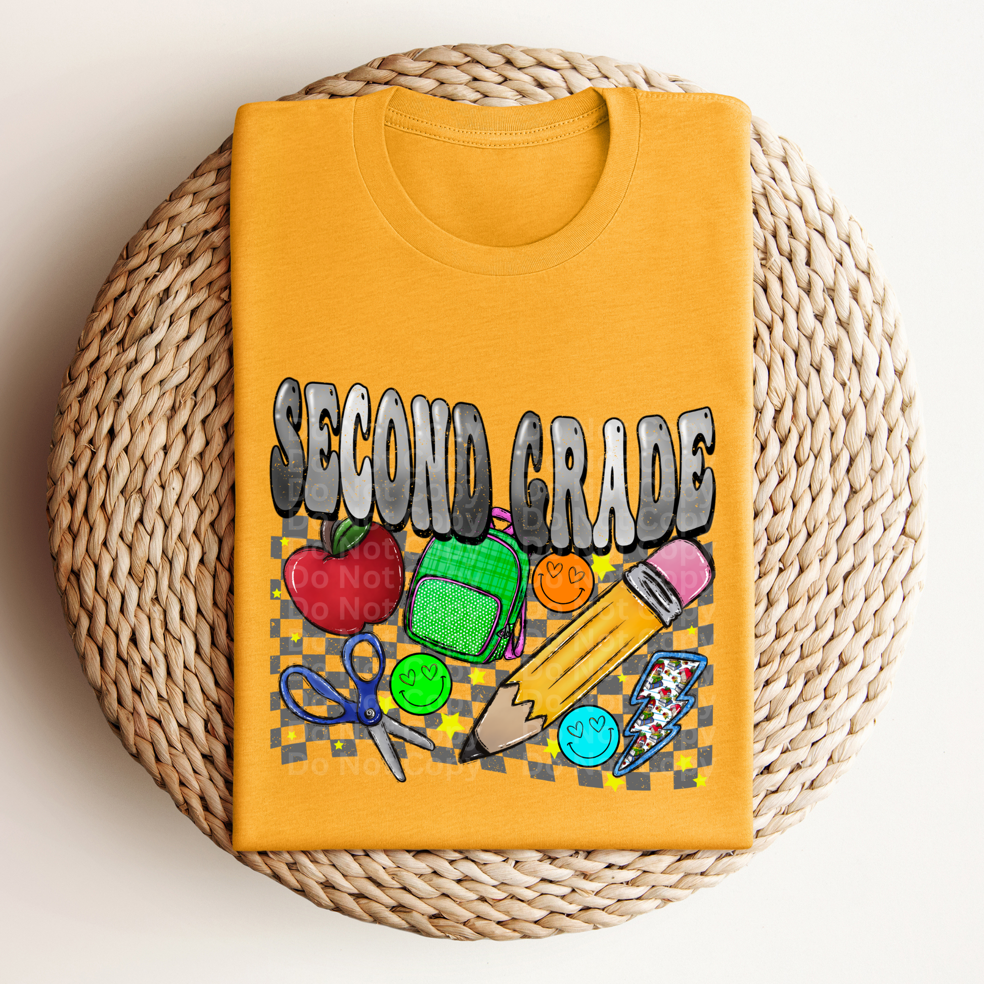 Second Grade Grey Font/Grey Checkered DTF Transfer