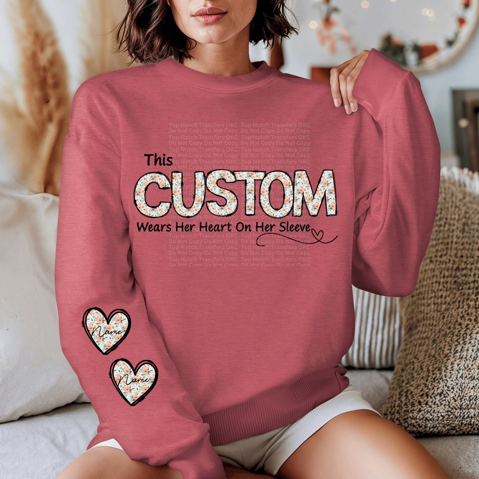This Custom wears her heart on her sleeve floral *Custom- leave names & sleeve heart names/colors in checkout notes*