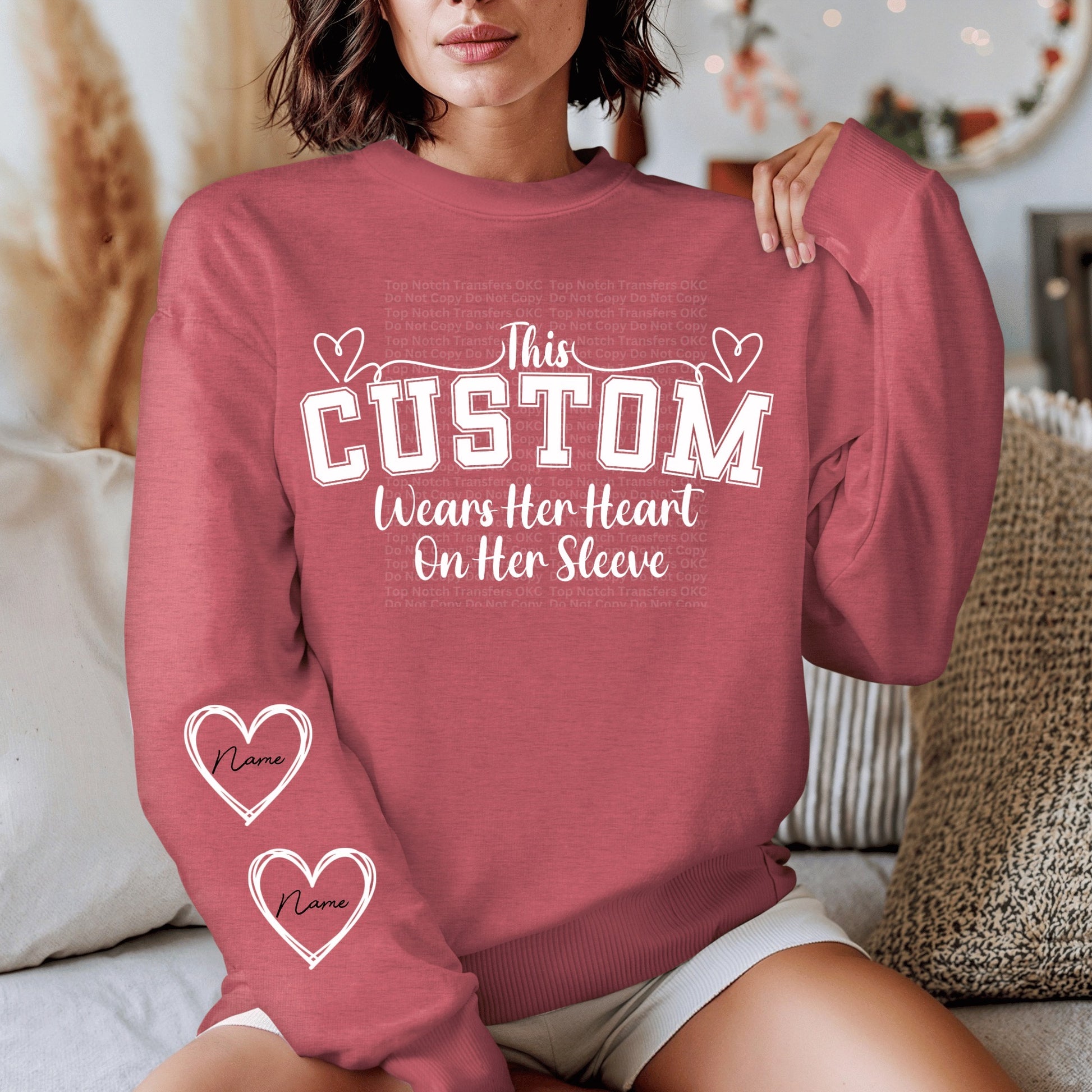 This Custom wears her heart on her sleeve White *Custom- leave names & sleeve heart names/colors in checkout notes*