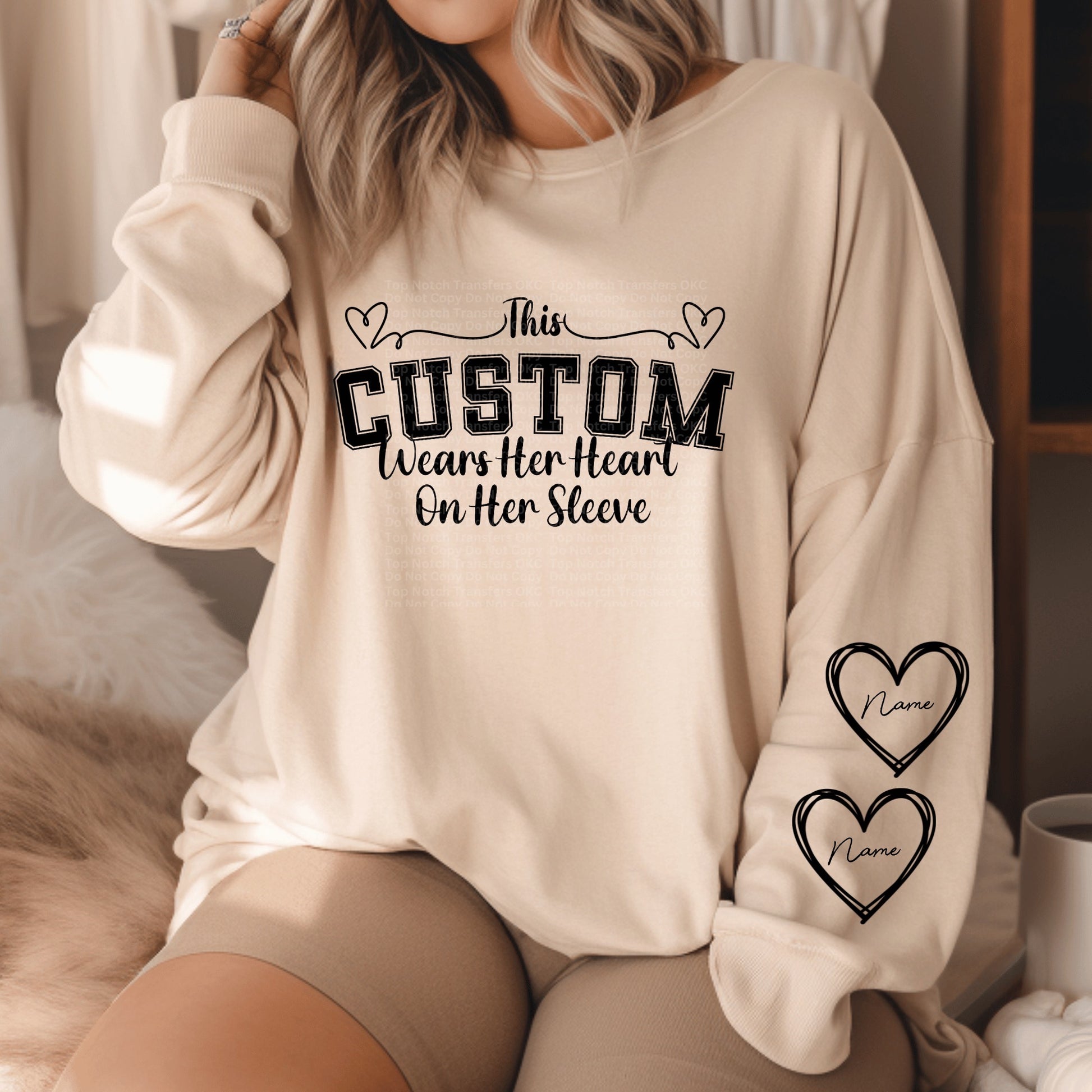 This Custom wears her heart on her sleeve Black *Custom- leave names & sleeve heart names/colors in checkout notes*