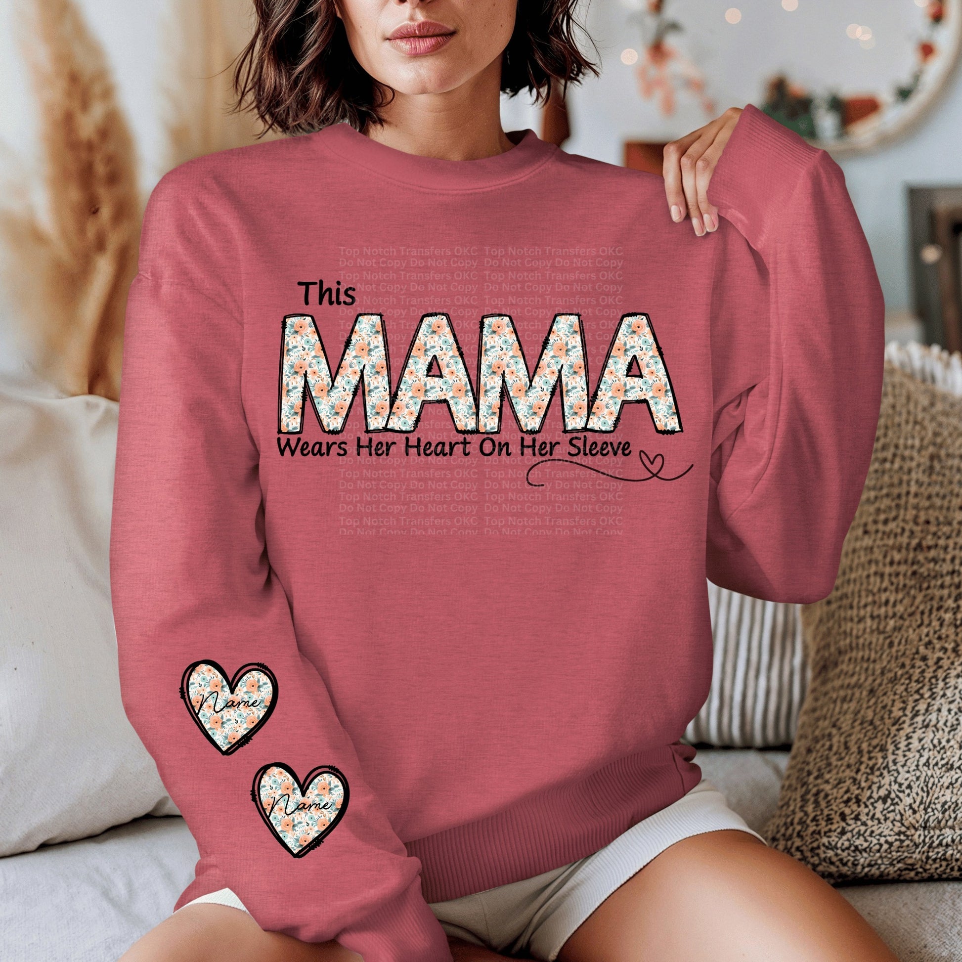 This Mama wears her heart on her sleeve floral *Custom- leave names & sleeve heart names/colors in checkout notes*