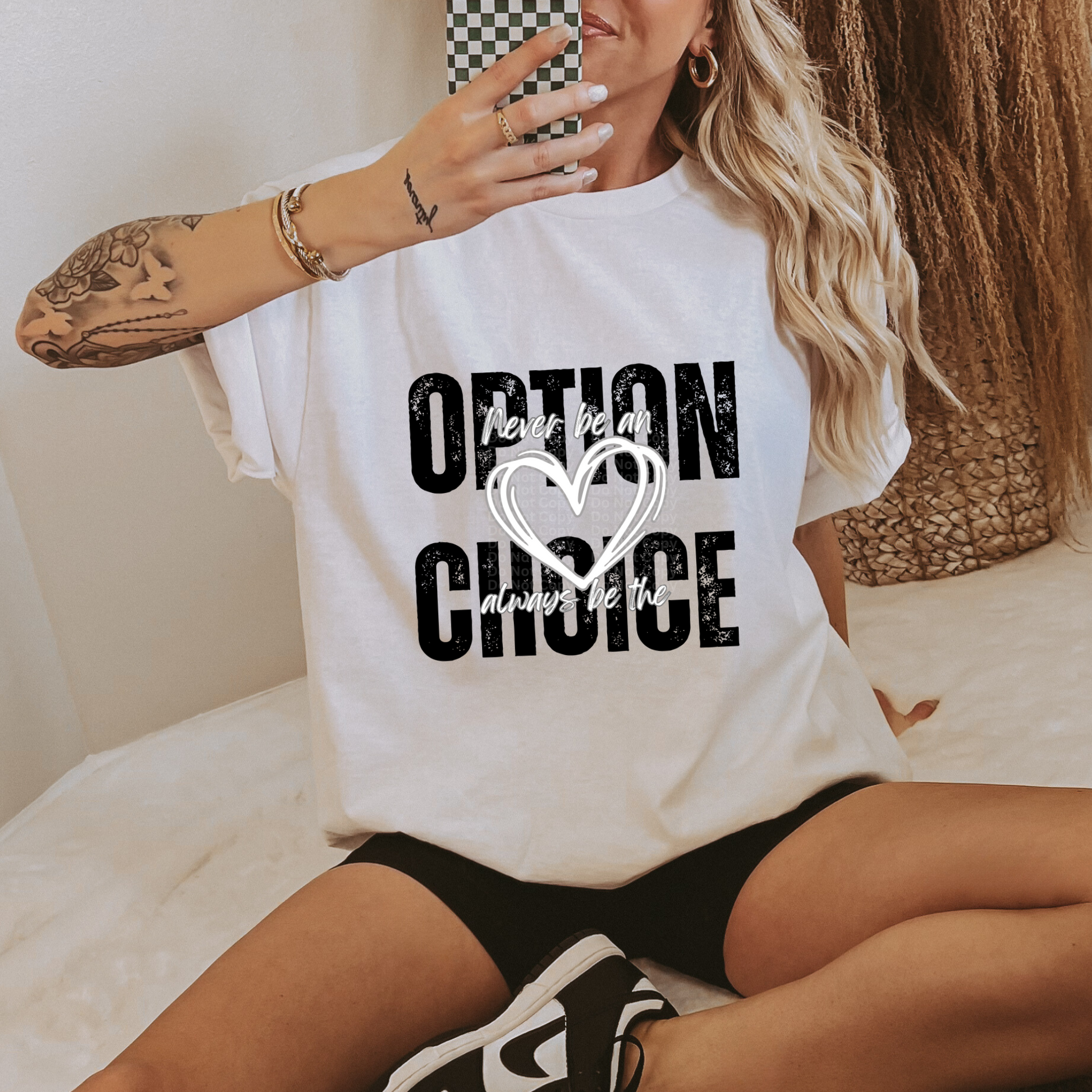 Never Be an Option Always Be the Choice (White Heart) DTF Transfer