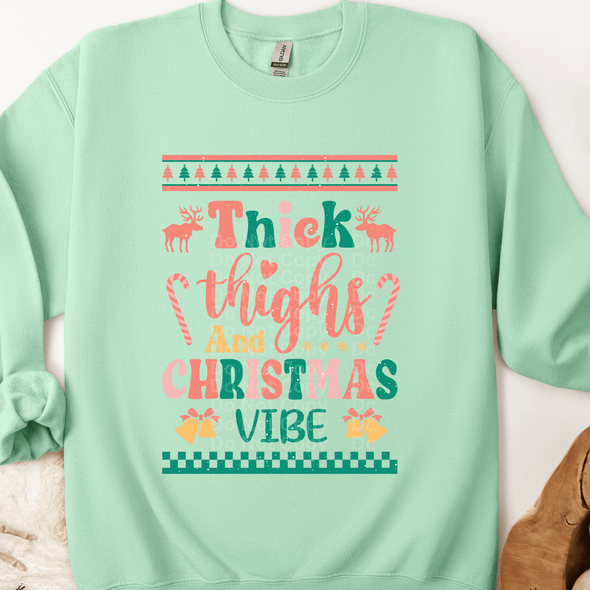Thick Thighs & Christmas Vibe Ugly Christmas DTF Transfer