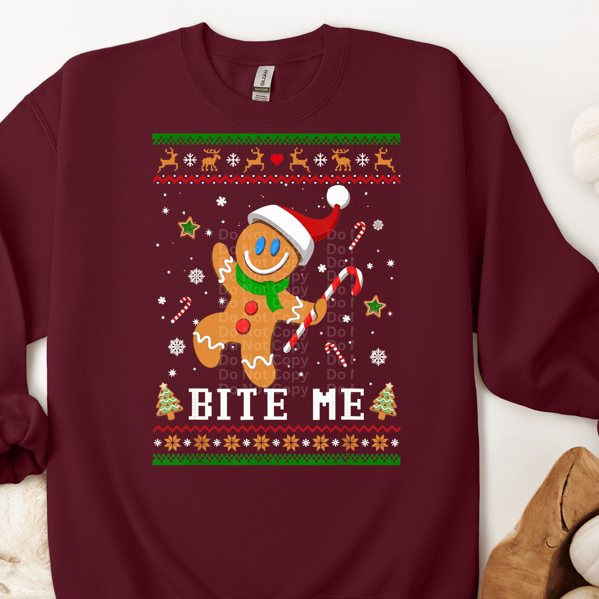 Bite Me Gingerbread Ugly Christmas Sweater DTF Transfer