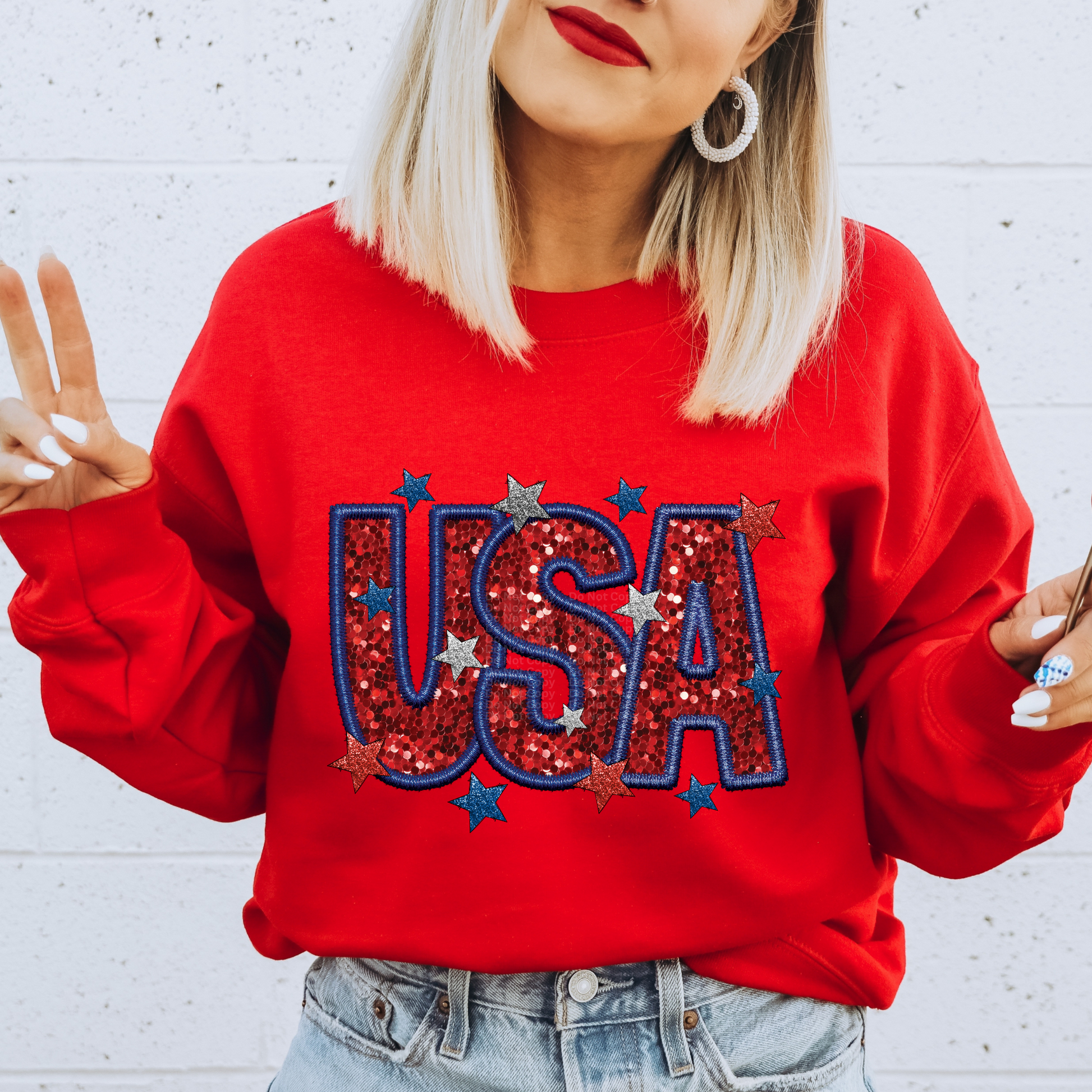 USA red Faux Sequin and Blue Faux Embroidery DTF Transfer