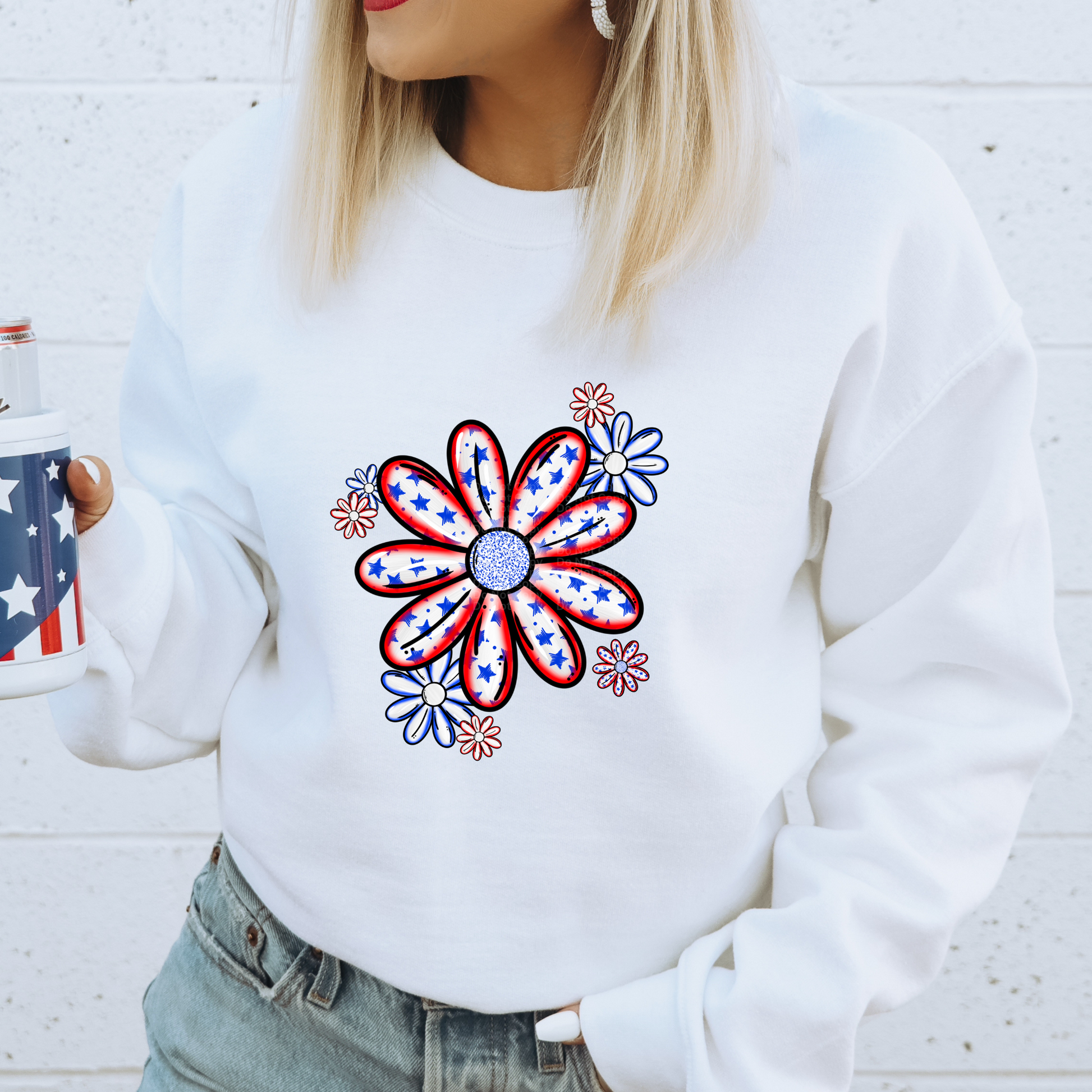 Patriotic Flowers red & blue outlined DTF Transfer