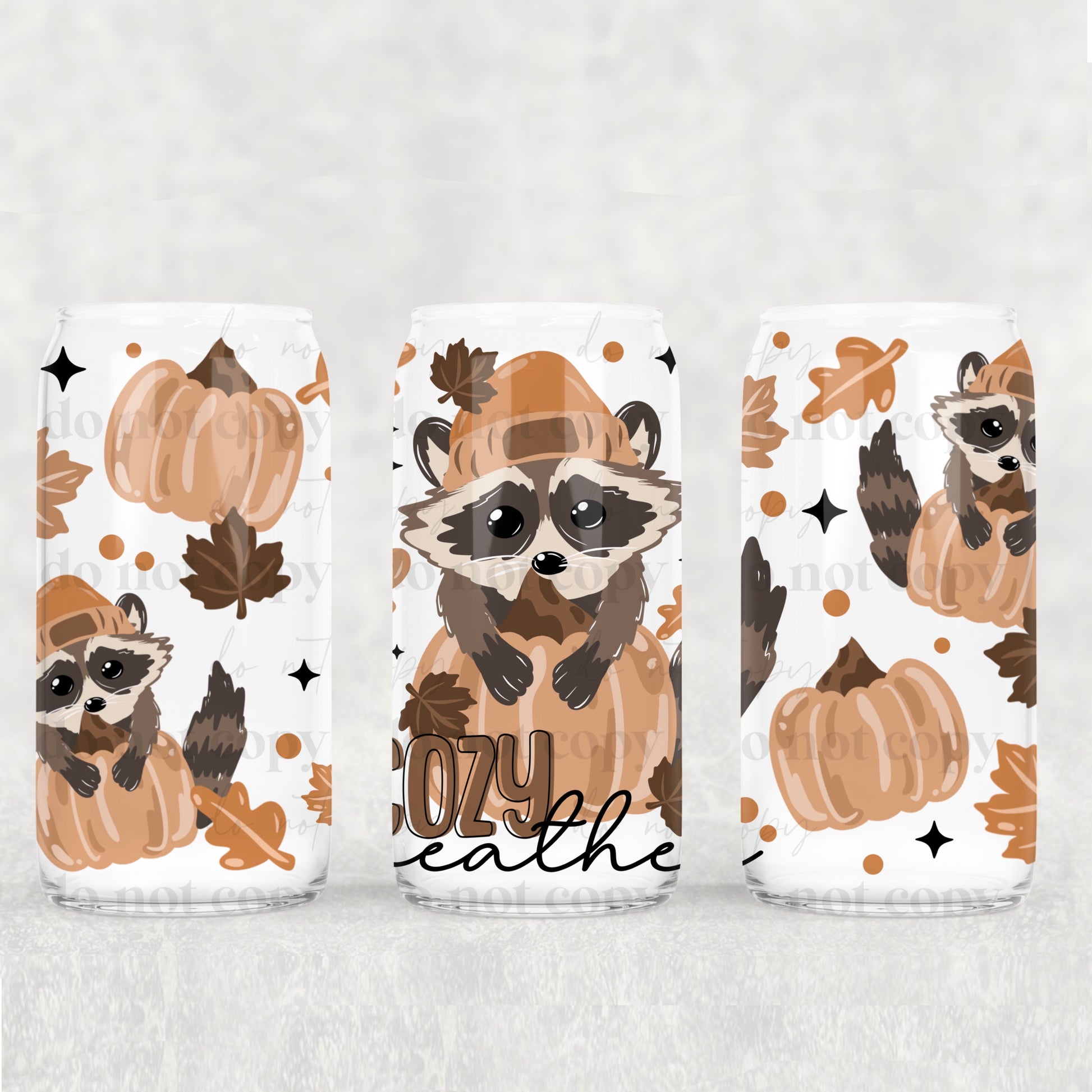Cozy Weather Fall Raccoon UV DTF 16 oz Cup Wrap *CSc 0925*