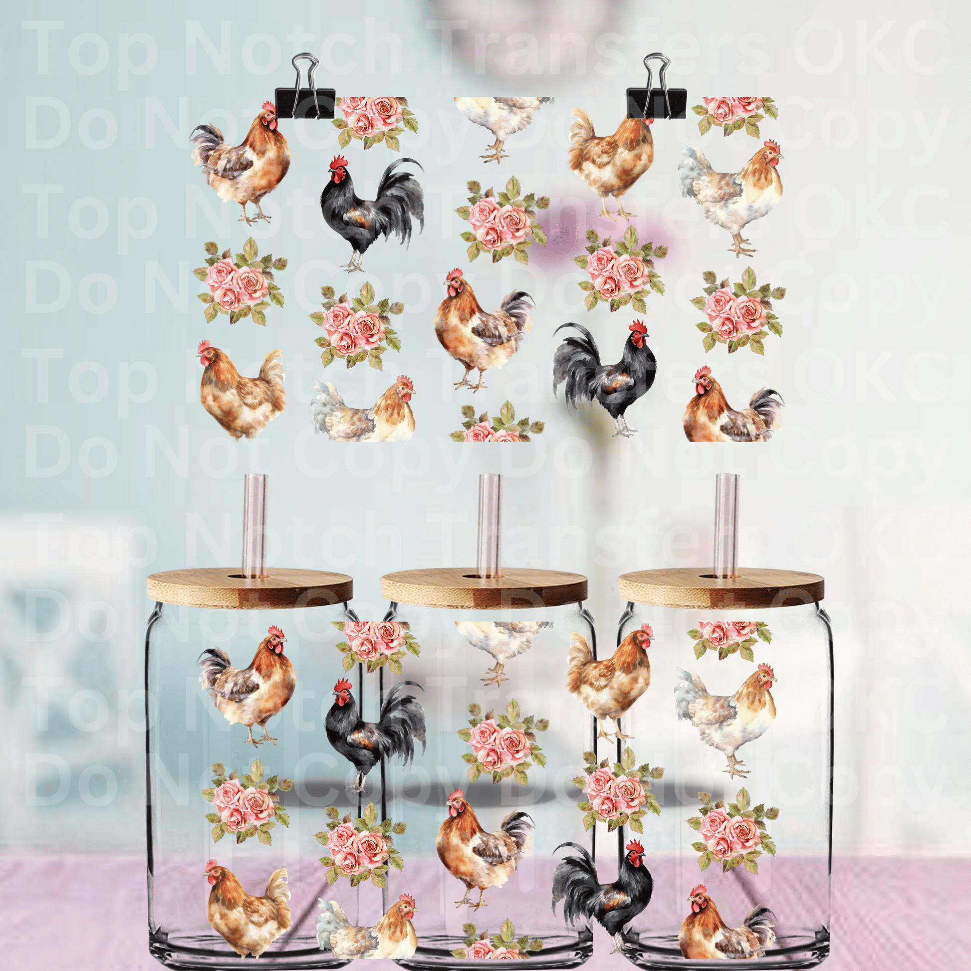 Chickens and Floral UV DTF 16 oz Cup Wrap