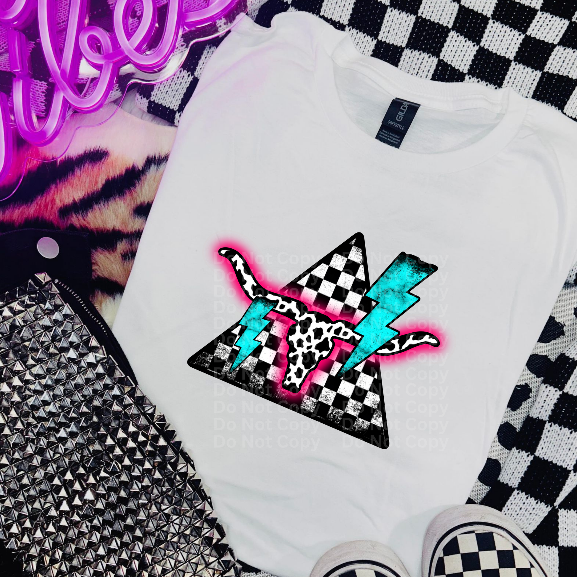 Pink, Blue & Checkered Triangle DTF Transfer